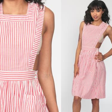 Apron Dress Red Striped Jumper Mini Dress 70s Pinafore Candy Shop Exile Tucson Az